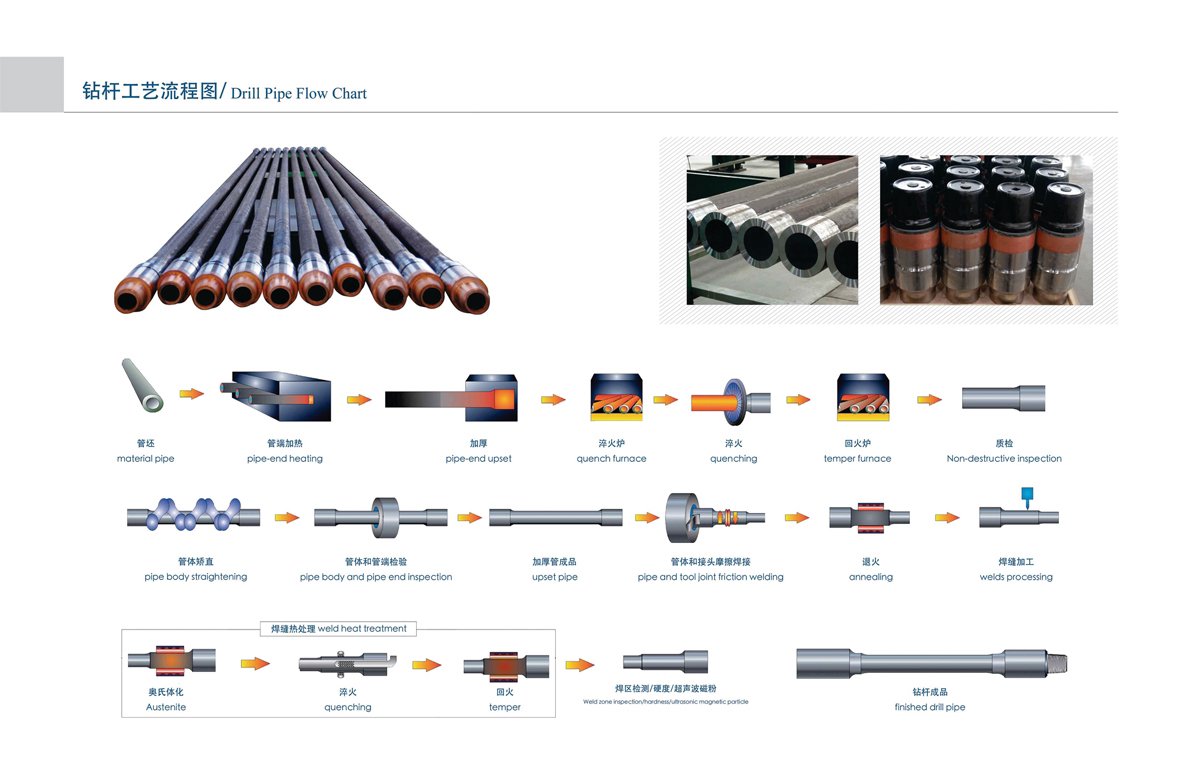 The common drill pipe is a rod that connects the drill bit, delivers the drilling fluid and transmits the power in the drilling tool. Our common drill pipe conforms to API Spec 5DP standards. We have obtained the production and use license of ARNCO 100XT, ARNCO 150XT, ARNCO 300XT and ARNCO 350XT.
